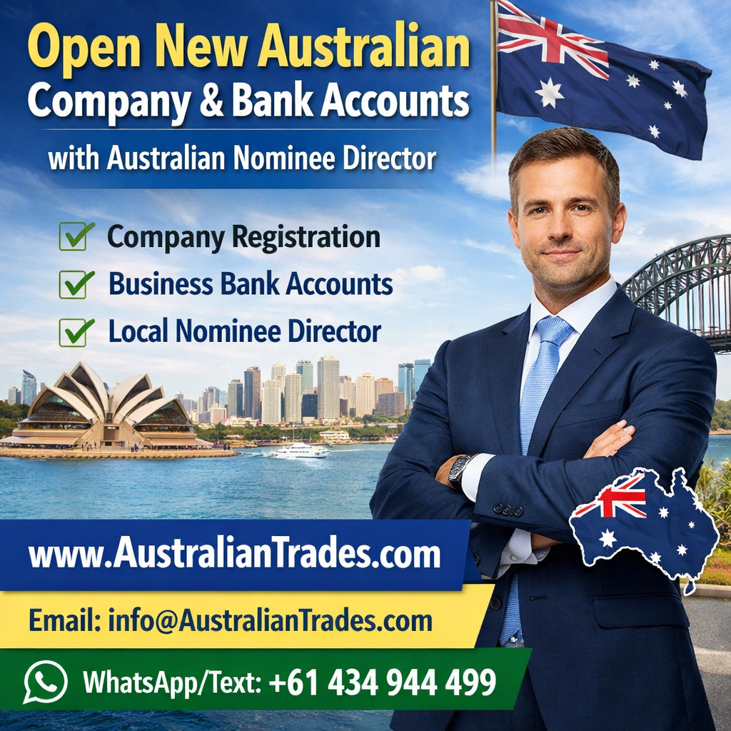 With AustralianTrades.com, you can open an Australian Company, plus Australian Business & Personal Bank Accounts, using a fully compliant Australian Nominee Director—even if you don’t live in Australia.