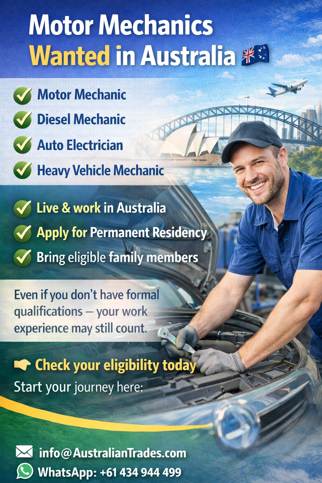 Australia needs skilled motor mechanics โ€” and you may qualify to live and work there.